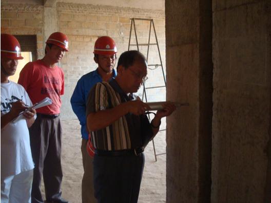 在对现场进行实测和实量中,中验组仔细做好建筑物的位置,标高,轴线和总垂直度等的检查,并就工程管理和质量情况分别与施工技术组、监理工程师和设计代表等有关人员进行了全面沟通,充分听取了施工技术组、监理工程师和设计代表等有关人员对工程实施情况以及对工程管理和质量的意见。