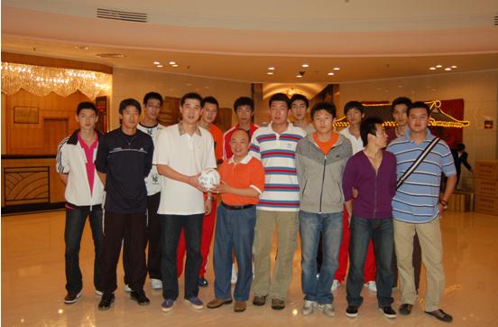 █ 图为卢卫中主教练(前国家男子排球队队长)向吴小卫副总裁赠送全队签名的排球
