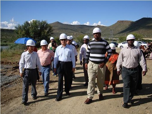 █ 房利总领事在项目组长彭可牛和Xhariep市长陪同下参观施工现场