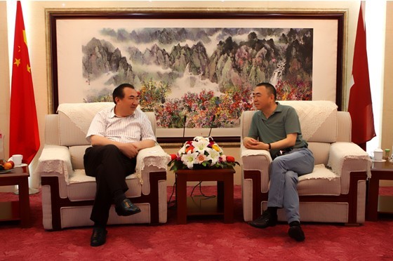 █ 省人大常委会副主任丁解民(左)同陈正华董事长亲切交流