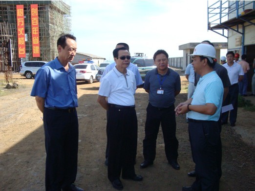 ■ 陈成(左二)副省长深入澄迈县老城污水处理厂施工现场,了解项目的进展情况。
