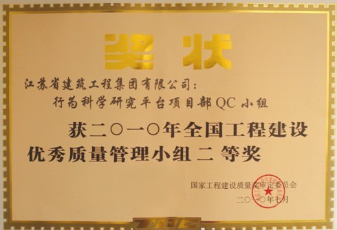 集团北京分公司中科院行为科学研究平台工程QC小组在活动中取得优异成绩,经过专家一致审定,被评为2010年度全国工程建设优秀质量管理小组二等奖。