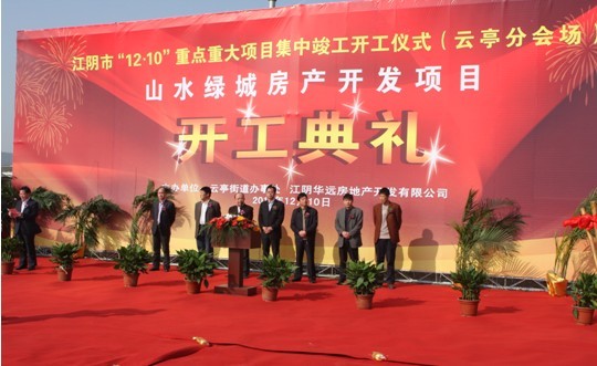 江阴市云亭街道党工委书记郁李达代表街道在典礼上致辞。他说,作为云亭街道“12·10”重点重大开工项目,江阴华远房地产开发有限公司山水绿城项目如期开工,这为云亭街道抢抓发展机遇,推进经济社会又好又快发展注入了强大动力。他表示,云亭街道将以“山水云亭、东郊绿城”为建设理念,主动服务,无缝对接,着力营造“亲商、扶商、爱商、富商”的深厚氛围,以最优、最快的服务支撑企业项目快速发展,为项目建设创造良好的条件,促进企业快速、健康发展。
