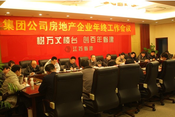 元月27日,集团公司房地产企业年终工作会议在集团总部三楼会议中心召开,泰州、兴化、扬州、江阴、无锡、南京等地的房地产公司中层及以上干部参加了会议。会议由仇天青总裁主持。会议听取了各房地产公司主要负责人关于2010年工作情况、年终分配落实情况、2011年工作思路的工作汇报。