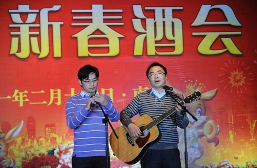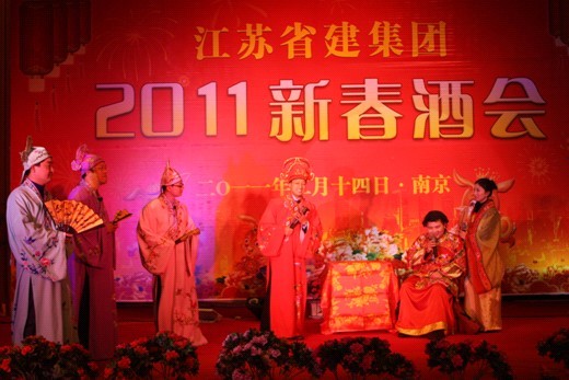 文艺表演中,小品《唐伯虎二次点秋香》以极具现代感的幽默台词博得满堂笑语;仇天青总裁即兴表演歌曲《Take me to you heart》,声情并茂,更是赢得大家连连喝彩;正在南京参加省政协十届四次会议的中国戏剧梅花奖获得者、扬州市扬剧团李政成团长专程抽出时间赶到会场,为大家带来了《戏曲连唱》。