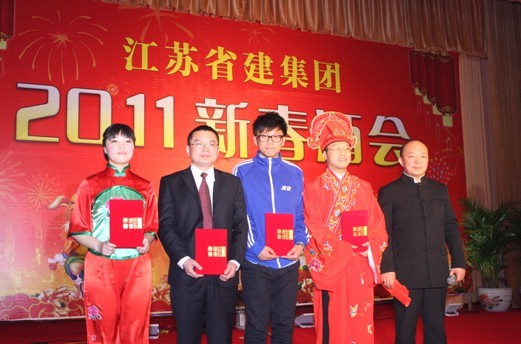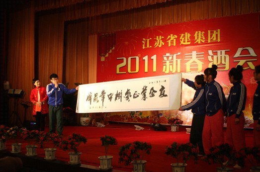 ■ 陈正华董事长担任抽奖嘉宾,特等奖得主让现场观众羡慕不已 ■ 仇天青总裁致新春贺辞 ■ 南京电视台著名主持人陆蓉、集团副总裁吴小卫主持酒会 ■ 张三旗、陈萍《北风吹》将观众带入往日岁月 ■ 海外公司小品《唐伯虎二次点秋香》搞笑表演爆笑全场 ■ 曾玲小提琴独奏《查尔达斯舞曲》让人耳目一新 ■ 蒋宁、刘钢《春天里》唱出了男人的沧桑 ■ 于国其、吴娟《跟我出发》唱出了省建人向梦想迈进的决心 ■ 省建版《千手观音》给观众带来全新感觉 ■ 李嘉增激情四射的《吉特巴旋风》最给力 ■ 戏剧梅花奖得主李政成专业唱功将酒会推向高潮 ■ 扬州熙龙地产小伙子的真功夫令人叹服 ■ 华鑫置业用舞蹈《有一个美丽的地方》演绎傣族风情 ■ 《售楼处的故事》再现集团房地产销售场景 ■ 北京分公司街舞表演青春动感,员工自创书法赠送集团 ■ 机关自编舞蹈《好运来》唱响了江苏省建美好2011 ■ 外企分公司《印度新娘》吸引了观众眼球 ■ 安装分公司小合唱《相亲相爱的人》温馨全场 ■《我的青春舞做主》炫出上海分公司靓丽风采 ■ 王博《小小的太阳》有种洒脱的磁性 ■ 优秀节目奖、优秀组织奖代表合影 ■ 酒会在合唱《明天会更好》中完美谢幕