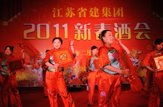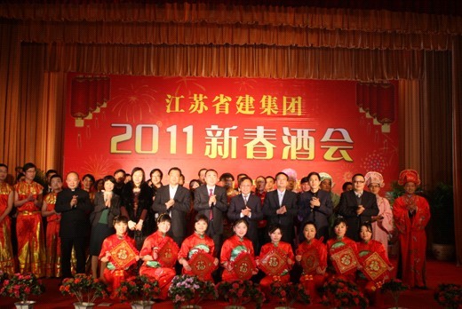 虎挟雄风辞旧去,兔携祥瑞迎新来。2月14日中午,南京双门楼宾馆钟山厅欢声笑语、歌声飞扬,江苏省建集团2011年新春酒会在这里隆重举行。省建管局领导、集团公司领导,部分公司老领导,机关全体管理人员,各基层单位正副职及部门负责人,部分关联企业、合作单位和银行系统的负责人等近400人欢聚一堂,共贺新春。