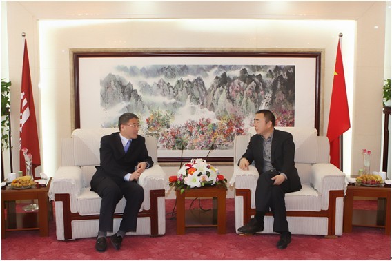 ■ 陈正华董事长同刘昌继(左)副行长就加深银企合作进行交流