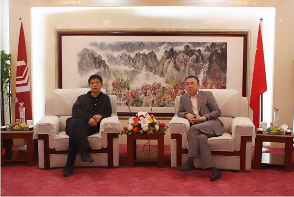 ■ 陈正华董事长同章子华(左)行长就深入的银企合作进行交流