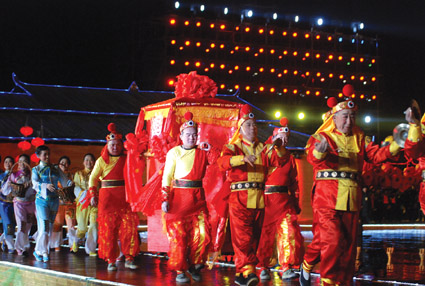 通过本土演员的表演,兴化的生态美景和多彩的民俗风情也得到充分展现。“茅山号子”、“木船制作工艺”、“板凳龙”等等兴化的文化艺术以及“渔家婚礼”等民俗风情都在演出过程中得以呈现。而成龙、王力宏、那英、张靓颖等实力明星的倾情表演,更是将晚会推向了一个又一个高潮。