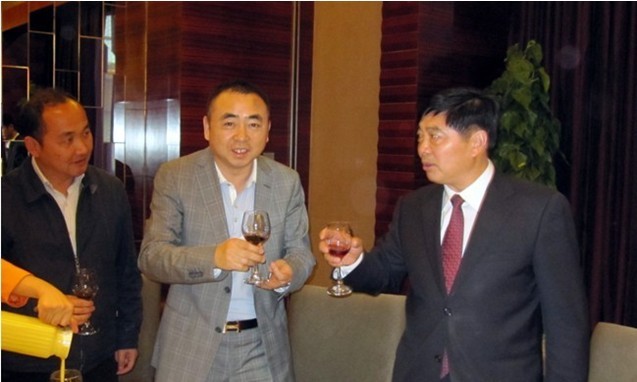 ■ 仇和(右)、周峰越(左)和陈正华共同举杯,预祝合作成功
