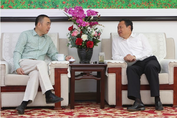 ■ 江苏援疆干部总领队、伊犁州党委副书记于青山(右)接见陈正华董事长