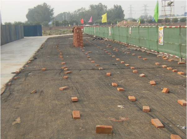 ■ 施工过程中的基坑临边防护和防止扬尘采取的裸土覆盖措施