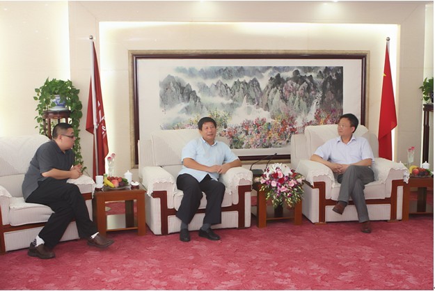 ■ 庞璐(中)参赞和仇天青总裁、张三旗副总裁在交流