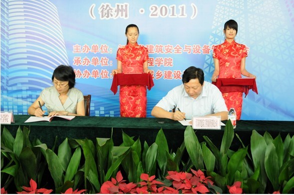 江苏省建筑安全与设备管理协会会长赵华中,省住建厅人教处处长章小刚,徐州工程学院院长韩宝平、副院长殷惠光,徐州市住建局副局长吴桂飞、质安处处长王建华,上海、云南、福建的兄弟协会负责同志以及省建筑安全与设备管理协会常务理事见证了本次签约全过程。