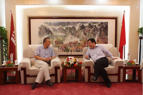 ■ 陈正华董事长会见来访的建行南京大行宫支行行长李朝晖(右)
