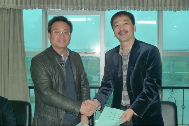 ■ 仇天青总裁、徐文聪总经理(右)祝贺签约成功
