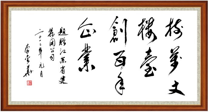 欣闻江苏省建集团2011年圆满实现百亿元产值目标,李金华副主席乘兴挥毫泼墨,在宣纸上题下“树万丈楼台,创百年企业”几个苍劲有力的大字,赞扬江苏省建改革发展取得的优异成绩,勉励江苏省建继续创造新的辉煌,把企业做大做强,成就“百年省建”的梦想。