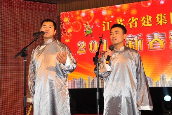 新春酒会文艺汇演在欢快、喜庆的歌舞表演《龙腾盛世》中拉开帷幕,气氛热烈,喜气洋洋,表达了省建人对新年新气象的热切期盼和美好祝愿。来自集团机关及各基层单位的配乐诗朗诵《我是一只省建凤凰》、手语表演唱《感恩的心》、男女生对唱《你是我心内的一首歌》、舞蹈《天鹅湖》、相声《施工员趣闻》、表演唱《you raise me up》、小品《懒汉相亲》等14个节目的精彩表演,引起了现场观众的强烈共鸣,博得了阵阵掌声。陈正华董事长一曲《北国之春》和仇天青总裁独唱《可惜不是你》,更是将酒会气氛掀向了高潮。