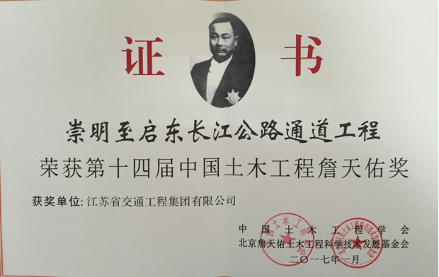 此次荣获的“詹天佑奖”是中国土木工程设立的最大奖项。此外,该工程还先后荣获了中国公路学会科学技术奖特等奖、公路交通优秀设计一等奖、江苏省扬子杯优质工程奖等多个奖项。