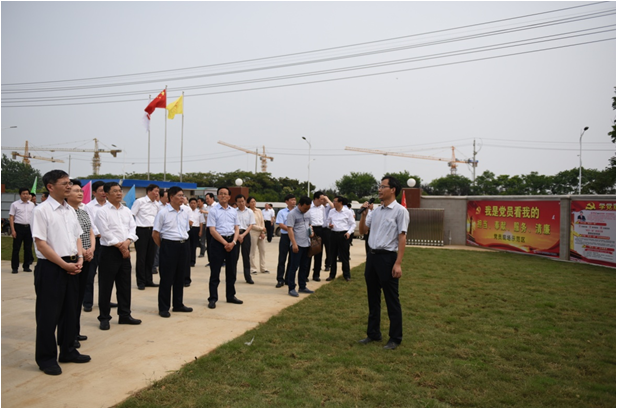 在施工现场,张晓宇董事长向市、区两级领导简要汇报了江苏交工发展历史,以及退出主城落户丹徒的时代背景。江苏交工总部暨生产基地建设项目项目建设用地约104亩,一期开工建设办公楼、检测试验楼、电算中心、1#、2#、4#厂房计6个单体(钢混框架与钢结构各三栋),建筑面积约4万平米。截止目前,办公楼桩基工程已全部结束,并通过相关检测,现正处于地下室承台基础施工阶段。检测试验楼正在进行二层板、梁、柱立模绑扎钢筋。电算车间处在施工准备阶段,办公楼基础施工结束后动工。1#厂房正进行钢架搭设施工。2#、4#厂房,基础施工完成,处于钢构件制作加工阶段。