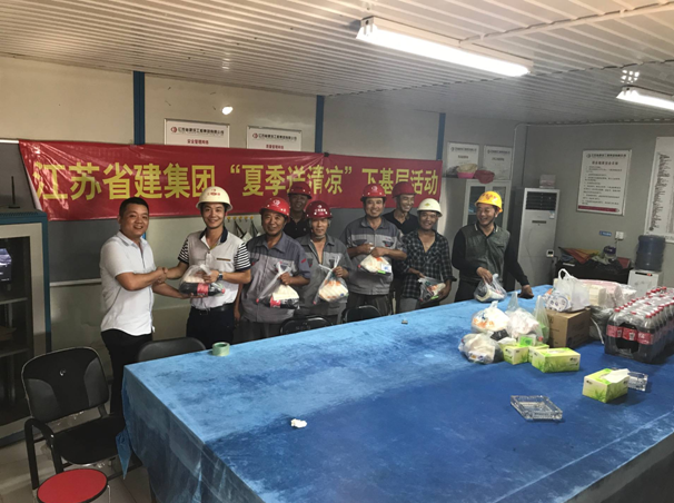 从7月下旬开始,直属分公司慰问组先后慰问了南京青龙山棚户区改造工程、滁州碧桂园、南京中和小学等所属项目,给顶着高温仍然坚守在生产一线的管理人员和工人送去了饮料、毛巾、清凉油等防暑降温用品,同时也送达了分公司领导对生产一线员工的关怀,受到广大员工的欢迎。