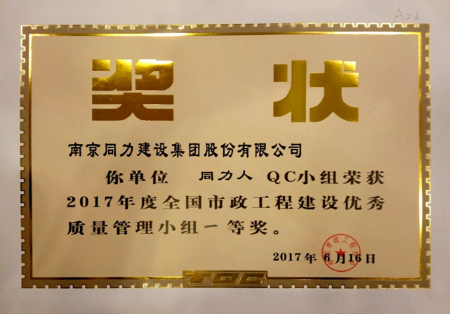 同力集团荣获全国市政工程建设优秀QC小组成果一等奖