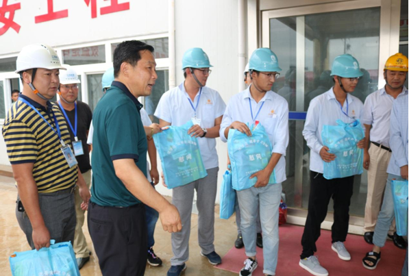 在工程现场,丁军华副厅长详细询问一线职工的生产生活、饮食卫生和劳动保护等情况,提醒大家高温天作业一定要注意生产安全。当看到项目部在施工现场专门为施工人员设置了休息凉棚,并备足了绿豆汤、茶水等饮品时,丁军华给予高度赞许。