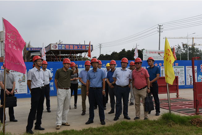 9月22日下午,江苏省建集团董事长陈正华、副董事长黄建灿、执行副总裁蒋宁、总工程师高宝俭,光大银行镇江分行行长薛红一行,在江苏交工董事长张晓宇、总裁龚万斌等人的陪同下,现场视察江苏交工新基地建设项目推进情况,并在公司会议室召开工作会议,听取江苏交工整体运作情况汇报。